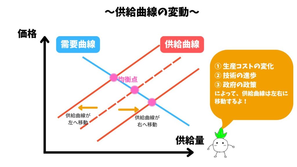 供給曲線も、価格の変化以外の要因によって左右に移動します。