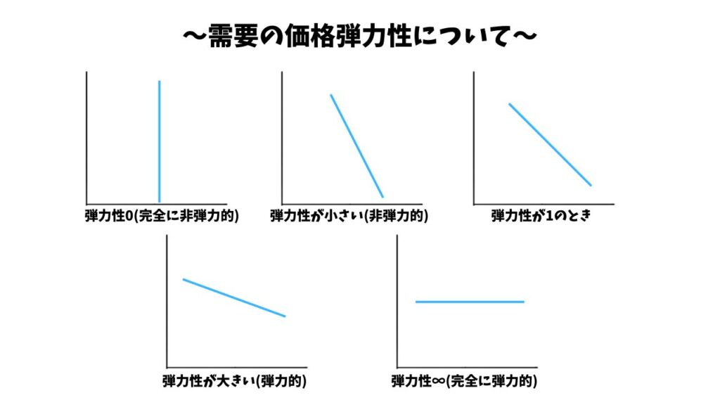 一般的に、弾力性が1よりも大きいときは需要は弾力的、弾力性が1より小さいときは需要は非弾力的になります。