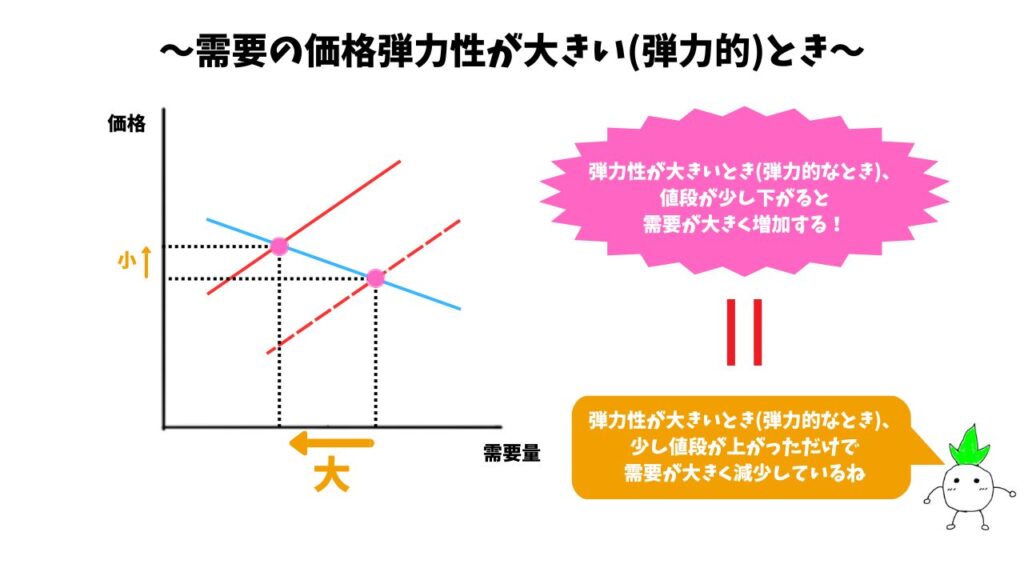 まずは、価格の弾力性が大きい場合について見ていきましょう!