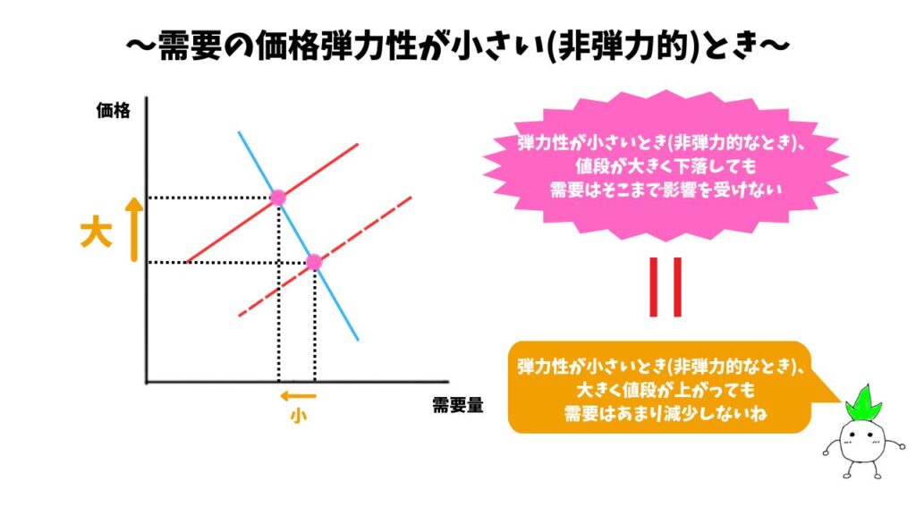 次に、価格の弾力性が小さい場合について見ていきましょう!