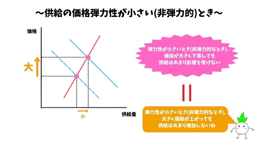 弾力性が小さい場合、供給曲線の傾きは急になります。