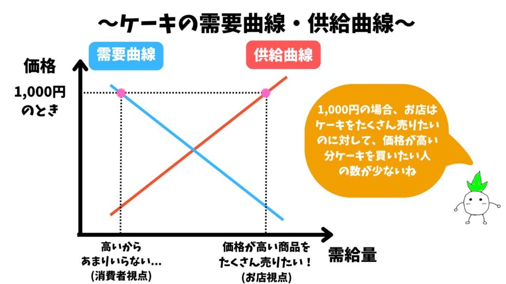 それに対して、消費者は「ケーキ1個に1,000円は出せない」と考え、購入する人はほとんどいないので売れ残ってしまいます。