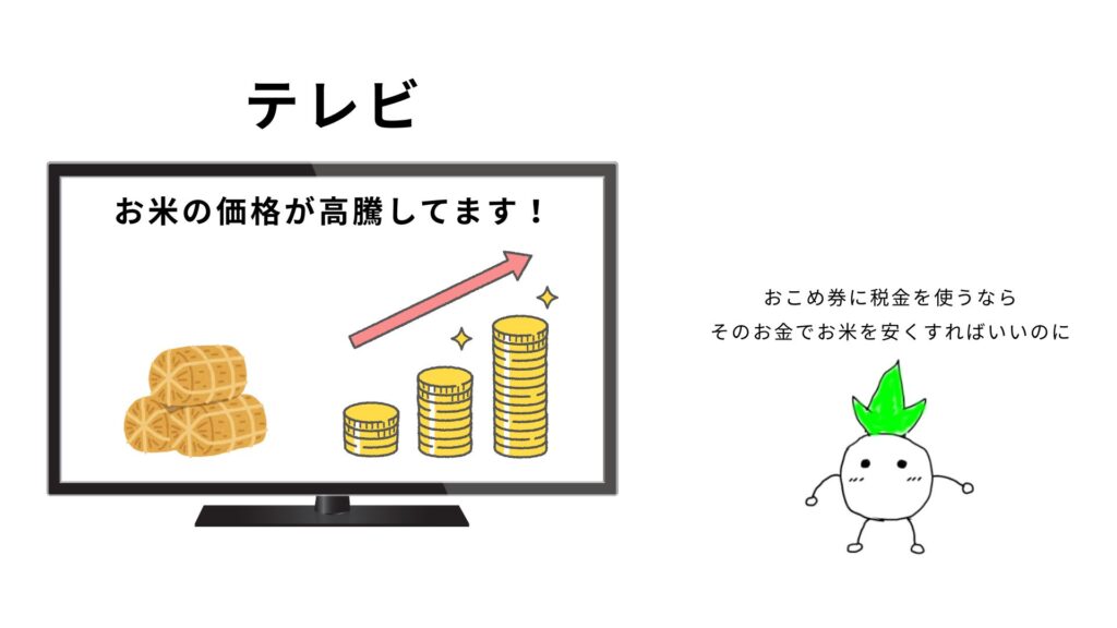 「おこめ券批判のために各自治体がおこめ券以外の政策を実施している」のように報道されているので、「なんで政府はおこめ券をやめないんだろう?」と感じますよね。
