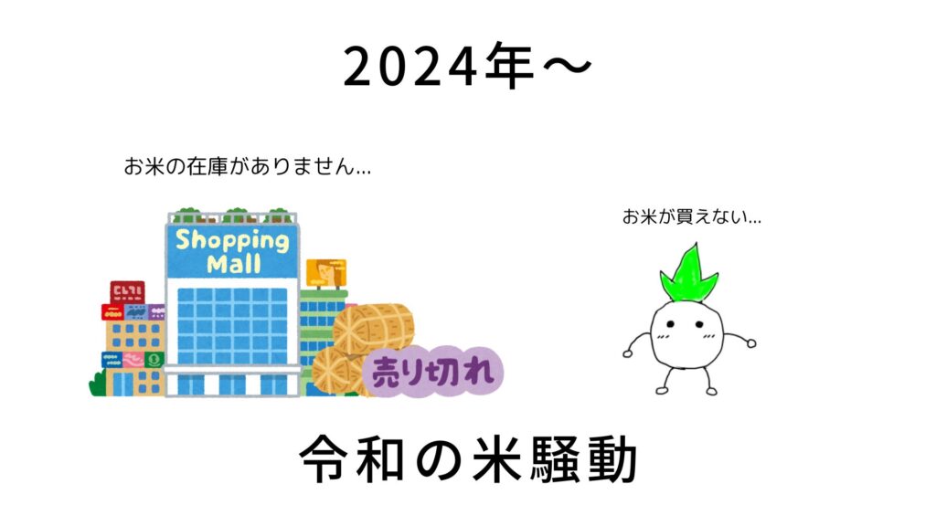 2024年の夏ごろからお米が不足し価格が高騰する「令和の米騒動」が起こりました。