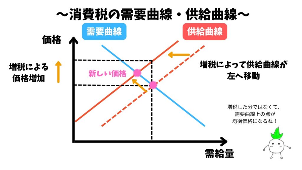 消費税の減税は一見とてもお得に感じるかもしれませんが、需要曲線・供給曲線を見てみると必ずしも消費税分安くなるとは限りません。