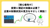 今回は、貸借対照表の基本的な仕組みと投資に役立つ見方をわかりやすく解説します。
